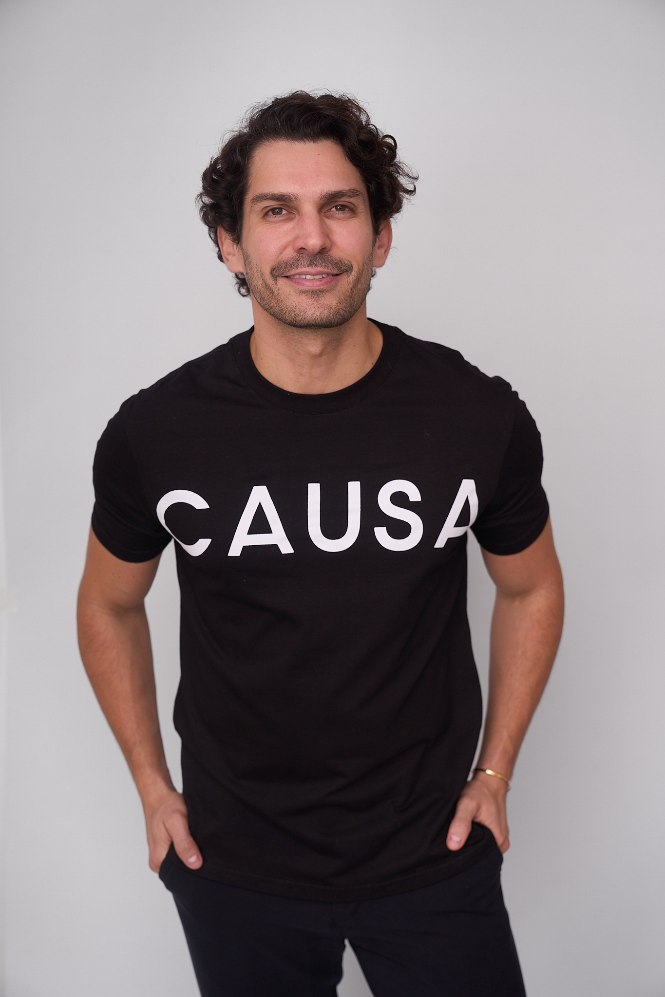 A versão preta desta camiseta essencial carrega a atitude e o propósito do CAUSA com um toque de sofisticação e versatilidade.